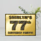 La façade de cette audacieuse carte d'invitation de foil de soixante-dix-septième anniversaire comporte un nom personnalisé, un grand numéro "77e", le message "Fête de l'anniversaire !", et une bordure, tous avec un motif rustique, mais élégant, à la fausse grain de bois inspiré. Le verso présente des détails personnalisés sur l'événement, tels que la date, l'heure, le lieu et toute autre information importante. Des invitations customisées comme celles-ci pourraient être utilisées pour les participants invitations/invités à une fête d’anniversaire qui se tient pour célébrer le 77e anniversaire de quelqu’un. [~Z0000595]