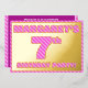 La façade de cette carte de faire-part audacieuse et amusante pour fêter le septième anniversaire et les fêtes comporte un nom personnalisé, un grand numéro "7e", le message "FÊTE D'ANNIVERSAIRE !", et une bordure, toutes avec un motif girly rose foncé et lignes rose clair. Le verso présente des détails personnalisés sur l'événement, tels que la date, l'heure, le lieu et toute autre information utile. Des invitations personnalisées comme celles-ci pourraient être utilisées pour les invités invitations à une fête d’anniversaire qui se tient pour honorer le 7e anniversaire de quelqu’un. [~Z0000597]