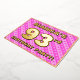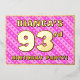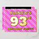 La façade de cette carte d'invitation amusante et aimante de quatre-vingt-treize ans fêtée par un feuillet comporte un nom personnalisé, un grand numéro "93e", le message "FÊTE D'ANNIVERSAIRE !", et une frontière. L'arrière - plan de l'avant est doté d'un motif optimiste aux rayures rose foncé et rose clair et aux formes cardiaques. Le verso présente des détails personnalisés sur l'événement, tels que la date, l'heure, le lieu/lieu et toute autre information utile. Des invitations customisées comme celles-ci pourraient être une façon amusante pour les invités invitations d’assister à un rassemblement d’anniversaire organisé pour célébrer le 93e anniversaire de quelqu’un. [~Z0000603]