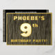 The front of this bold ninth birthday party/celebration foil invite programmes a personalized name, a large number "9th", the message "BIRTHDAY PARTY!", and a border, all in foil. The background of the front feobjets a rustic, yet elegant, faux wood grain appearance inspecter. The back feobjets personalized details about the event, such the date, time, place/étrangère et any other information that may be est pertinent. Customized invitations like these might be used to invite attendees/guest to birthday party g held to honor somebody’s 9th birthday. 2.