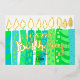 Ajoutez votre logo personnalisé et votre texte personnalisé à nos cartes d'anniversaire d'entreprise fantaisistes populaires avec une image amusante dessinée à la main de bougies vertes et bleues sur un arrière - plan blanc avec de vraies lettres d'or ou d'argent et des lumières de bougies. Parfait pour les affaires, envoyer à des clients, des partenaires d'affaires ou des employés, ajouter votre touche personnelle et faire de cet événement une occasion mémorable.