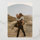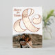 Élégant et moderne, maitresse de calligraphie avec masque arrondi recouvert de 2 photos simples en feuille d'or rose, mariage noir et blanc enregistrer la date.