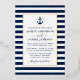 Faire-part de mariage d'Ancres Nautiques moderne et élégant. Ancre blanche avec anneau d'huile d'or autour. Bleu de marine et Blancs. Cadre à huile d'or.