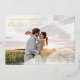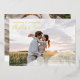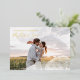 Photo feuille d'or faire-part de mariage personnalisé avec une photo et votre libellé mariage informel en feuille d'or contre les éclaboussures d'aquarelle blanche.
