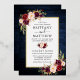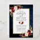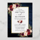 Aquarelle moderne Elégante Bourgogne Le Faire-part de mariage Floral comprend des roses bordeaux, des roses roses roses, des roses rouges et une végétation botanique. Cadre à huile d'or. Rustic Country Blue Wood Imprimer.
