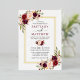 Aquarelle moderne Elégante Bourgogne Le Faire-part de mariage Floral comprend des roses bordeaux, des roses roses roses, des roses rouges et une végétation botanique. Deux cadres - Double cadre - Gold Foil