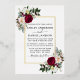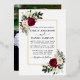 Moderne Elégant Aquarelle Bourgogne Floral Greenery Faire-part de mariage comprend des pivoines, des feuilles d'eucalyptus et d'autres belles verdure. Cadre à huile d'or. Photo De Retour.