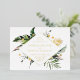 Ce faire-part de mariage est composé de feuilles de palmiers aquarelle, de feuilles de bananes, de feuilles tropicaux exotiques, de feuilles d'or avec cadre en diamant doré, et d'un motif tropical vert & or à l'arrière. Idéal pour les événements tropicaux, de destination, d'été, les mariages de plage ou autres événements similaires.