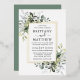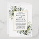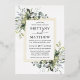 Le Faire-part de mariage moderne Elegant Greenery comprend une végétation botanique, des feuilles d'eucalyptus et des feuilles bleus poussiéreux. Sage Green Back. Deux cadres - Double cadre - Gold Foil
