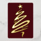 Invitation chic et moderne en feuille d'or pour Noël, réalisée en rouge profond, avec un arbre de Noël abstrait en feuille d'or et un texte indiquant Vous êtes invités. Personnalisez le texte personnalisé, au dos, pour répondre à vos besoins de fête de fin d'année.