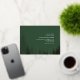 Arbres à feuillage persistant or à gauche avec texte blanc et arrière - plan vert émeraude.