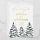 Cette carte Enregistrer la date présente de beaux arbres de pin enneigés à l'aquarelle, avec une typographie calligraphique moderne en FEUILLE D'OR RÉEL. Découvrez nos collections de mariage pour trouver les articles assortis parfaits pour rendre votre journée spéciale encore plus spéciale et impressionner vos invités avec ce beau design.