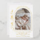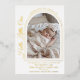 Beneath the arch, your baby's name, birth statistics and parent's names are displayed in a refined, balanced layout that complements the modern arch silhouette. The combination of classic calligraphy, architectural lines, and radiant gold foil makes this design perfect for new parents seeking a sophisticated yet contemporary announcement.