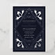 Préparez-vous à un événement élégant avec cette invitation tout-en-un. Cette faire-part de mariage d'inspiration écossaise présente un cadre Art Nouveau dans un argenterie chatoyant contre un arrière - plan noir, parfait pour une histoire d'amour pleine de magie. Le dos présente les détails du mariage. Veuillez noter que l'argent au verso de l'invitation n'est PAS un vrai papier peint et est imprimé en couleurs plates.