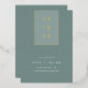 Un simple et élégant enregistrer la date design pour les couples modernes, avec un élément géométrique feuille or portant votre date mariage contre un ton sur ton arrière - plan vert jade. Personnalisez avec vos noms, l'emplacement du mariage et le site Web ou des détails supplémentaires en bas.