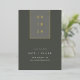 Un design simple et élégant enregistrer la date pour les couples modernes, avec un élément géométrique feuille d'or portant votre date de mariage contre un ton sur ton sombre fumée vert olive arrière - plan. Personnalisez avec vos noms, l'emplacement du mariage et le site Web ou des détails supplémentaires en bas.