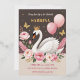 Faites de la journée spéciale de votre enfant une inoubliable invitation à l'anniversaire de cette princesse de cygne enchanteresse ! Doté d'un cygne blanc gracieux portant une couronne d'or, entouré de roses douces roses, de plumes, de papillons croustillants et d'un joyeux ballon rose, ce design est parfait pour une célébration royale. La délicate palette de couleurs rose et or apporte une touche de magie et de charme, idéale pour les anniversaires, les baby showers ou tout événement sur le thème de la princesse. Customisez tout le texte correspondant aux détails de votre événement, y compris le nom, la date, l'heure, le lieu et le RSVP. Une invitation fantaisiste et élégante qui donne le ton pour une journée mémorable !