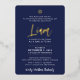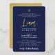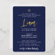 Invitation En Aluminium BAR MITZVAH lettrage script or bleu marine