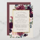 L'élégante invitation à la bat mitzvah à la floraison présente une bordure de marsala bordeaux violet, rose vif et bleu poussiéreux, avec un feuillage botanique luxuriant et des garnitures en feuille d'or. Personnalisez avec votre cérémonie de temple et les détails de la célébration en lettres modernes sur un riche arrière - plan blanc cassé en ivoire.