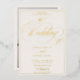 Chic and elegant real gold foil and beige photo calligraphy wedding invitation and geometric border frame.With a beautiful brush calligraphy script.