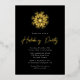 Invitations de fêtes de foil moderne avec un flocon de neige en feuille d'or au sommet du design avec un arrière - plan noir festif. "Holiday Party" est affiché dans un script manuscrit en feuille d'or. Personnalisez les invitations aux fêtes de fêtes de fêtes de flocon de neige en papier blanc.