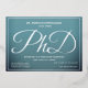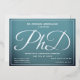Une invitation à la fête de doctorat avec feuille d'argent, texte blanc, et un arrière - plan bleu. Ajoutez simplement vos informations, ajoutez cette invitation à votre panier et célébrez cette réalisation majeure. Bleu Argent PhD Graduation Foil Invitation Conception vacances | ©Melissa Patton - Designer