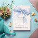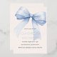 Arrière - plan beige clair, crème, décoré d'un grand arc bleu clair. Personnalisez et ajoutez un nom et des détails du parti. Le nom et l'âge sont écrits avec un véritable papier argenté.