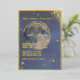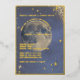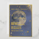 Un véritable faire-part de mariage de feuille d'or prend vie avec ces éléments célestes bleus du ciel de galaxie. Préparez-vous à une célébration personnalisée et enchanteresse de l'amour. Customisez-le avec vos noms de lieux mariages, l'occasion, la date et l'heure. L'arrière - plan de ce design est quelque chose entre les tons bleus avec étoiles, galaxie et lune, parties scintillant. La feuille réelle est changeable en or, argent et or rose. Le film a un cadre, la typographie, quelques étoiles et sont en train de changer à votre couleur de feuille sélectionnée. Hobinishop