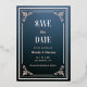 Faites une impression durable avec ce bleu gothique et or rose enregistrer la date avec un cadre formel audacieux et de la feuille réelle. Un choix intemporel pour les mariages classiques, cette carte allie élégance sombre et modernité vintage, parfait pour les couples à la recherche d'une faire-part mariage luxueuse avec une touche romantique.