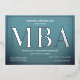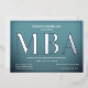 Une invitation à la remise de diplômes MBA avec feuille d'argent, texte blanc, et un arrière - plan bleu. Ajoutez simplement vos informations, ajoutez cette invitation à votre panier et célébrez cette réalisation majeure. Bleu Silver MBA Graduation Foil Invitation Conception vacances | ©Melissa Patton - Designer