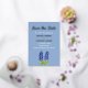 Moderne, élégant, bleuets aquarelle florale, QR Code, photo, feuille d'or, Mariage Enregistrer la date. Vous pouvez le personnaliser avec vos propres détails.