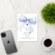 Un arrière - plan blanc, décoré d'un grand arc bleu et d'une croix d'or. Personnalisez et ajoutez le nom et les détails. Le nom et le mot Baptême sont écrits avec de véritables feuilles d'argent.