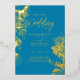 Invitation En Aluminium Blue Gold Tropical Leaf Destination Mariage