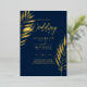 Invitation En Aluminium Blue Gold Tropical Leaf Destination Mariage