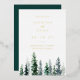 Elégant mariage d'hiver enregistrer les cartes de date comprennent de luxueux papier d'aluminium avec une bordure inférieure de chasseur vert de pins aquarelles. Choix chic pour les mariages d'hiver en forêt, en montagne ou en bois, ces appartements élégants, sauf les cartes de dates sont faciles à customiser avec vos noms, date mariage, emplacement mariage, site Web ou une indication qu'une invitation formelle suivra.