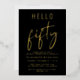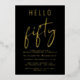 Invitation chic black 40ème anniversaire avec "bonjour cinquante" dans un mélange de police simple et d'un script élégant, votre nom dans la typographie serif élégante et les détails de la fête dans la lettrage moderne, le tout rendu dans votre choix d'or authentique, feuille d'argent ou feuille d'or rose.