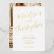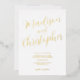 Une invitation de mariage moderne, chic et élégante avec des noms personnalisés avec une calligraphie manuscrite en feuille d'or sur blanc, ajoutez votre photo. . Tous les textes, noms et couleurs arrière - plans sont personnalisables. Une invitation simple et minimaliste.