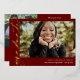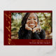 Élégante invitation de graduation horizontale en feuille d'or en rouge foncé personnalisée avec une photo sur la couverture et deux autres photos sur le dos. Invitation de graduation recto verso imprimée avec feuille d'or contre un arrière - plan bordeaux. 2 en 1 faire-part de diplôme et invitation personnalisée avec des photos et le nom du diplômé en feuille d'or.