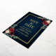 Invitation En Aluminium Burgundy Navy Floral Gold Photo Enregistrer la dat