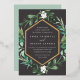 Choisissez ces invitations aux mariages botaniques aux couleurs riches pour les mariages d'hiver élégants, les noces d'automne ou d'automne, ou les mariages du soir en été. Le design chic allie éléments naturels et géométriques pour un look frais et moderne. Vos détails mariages apparaissent en lettres blanches, encadrés par une bordure en feuille d'or et entourés de feuillage vert, de feuilles luxuriants et de petites fleurs blanches. Objets correspondants disponibles dans notre collection Greenhouse.