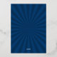 Scénario moderne Fêtons!, fouler l'invitation de fête d'anniversaire. Le dos de la carte comporte un motif de sunburst rétro cool en bleu.