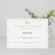 Invitation En Aluminium Certificat d'authenticité personnalisé Gold Foil