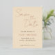 Mariage d'impression simple et papier Enregistrer la carte Date avec un script noir et stylisé sur un arrière - plan couleur champagne. Modifiez les noms et la date, etc., avec vos propres informations de mariage. Modifiez la couleur du papier peint si vous le souhaitez. La couleur Arrière - plan peut également être modifiée pour correspondre à votre jeu de couleurs mariage.