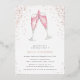 Les invitations festives et élégantes à la douche nuptiale comprennent une paire de verres de champagne clinquants en aquarelle, remplis de mousseux roses. Personnalisez avec vos détails de douche nuptiale en lettres gris chic. La finition et le lettrage en feuille d'or rose complètent le design.