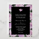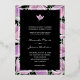 Élégantes fleurs de magnolia dans les tons violet, lavande et blanc encadrés dans de véritables feuilles d'argent, ces invitations florales de mariage présentent vos détails mariages en lettres blanches chics contre un arrière - plan noir. OBJETS CORRESPONDANTS dans notre magasin.