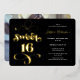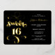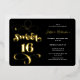 Chic noir or rétro script photo Sweet 16 anniversaire invitation fête avec véritable feuille d'or.