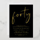 Élevez votre fête de 40ème anniversaire avec cette invitation noire chic avec "quarante" dans un script élégant, votre nom dans la typographie serif élégante et les détails de la fête dans le lettrage simple et moderne, le tout rendu dans votre choix d'or authentique, feuille d'argent ou feuille d'or rose.