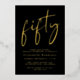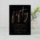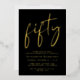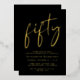 Invitation à la soirée de 50ème anniversaire noir chic avec "cinquante" présentée dans un script élégant, votre nom dans la typographie serif élégante et les détails de la fête dans le lettrage simple et moderne, le tout rendu dans votre choix d'or authentique, feuille d'argent ou feuille d'or rose.