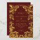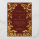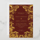Une élégante invitation mariage de automne avec un cadre dessiné à la main citrouilles et feuilles en véritable feuille d'or sur un arrière - plan bordeaux. Personnalisez avec vos détails en or.