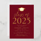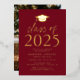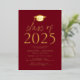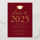 Invités Invitations pour célébrer la grade avec notre classe moderne d'invitations de la fête de remise des diplômes 2025. Les invitations ont un bouchon de graduation en haut avec "Class of 2025" en papier doré avec un arrière - plan bordeaux. Personnalisez les invitations en ajoutant le nom du diplômé, l'école et les détails de la fête de remise des diplômes. Les invitations de la fête de remise de diplômes en feuille d'or se retournent pour montrer la photo du diplômé.
